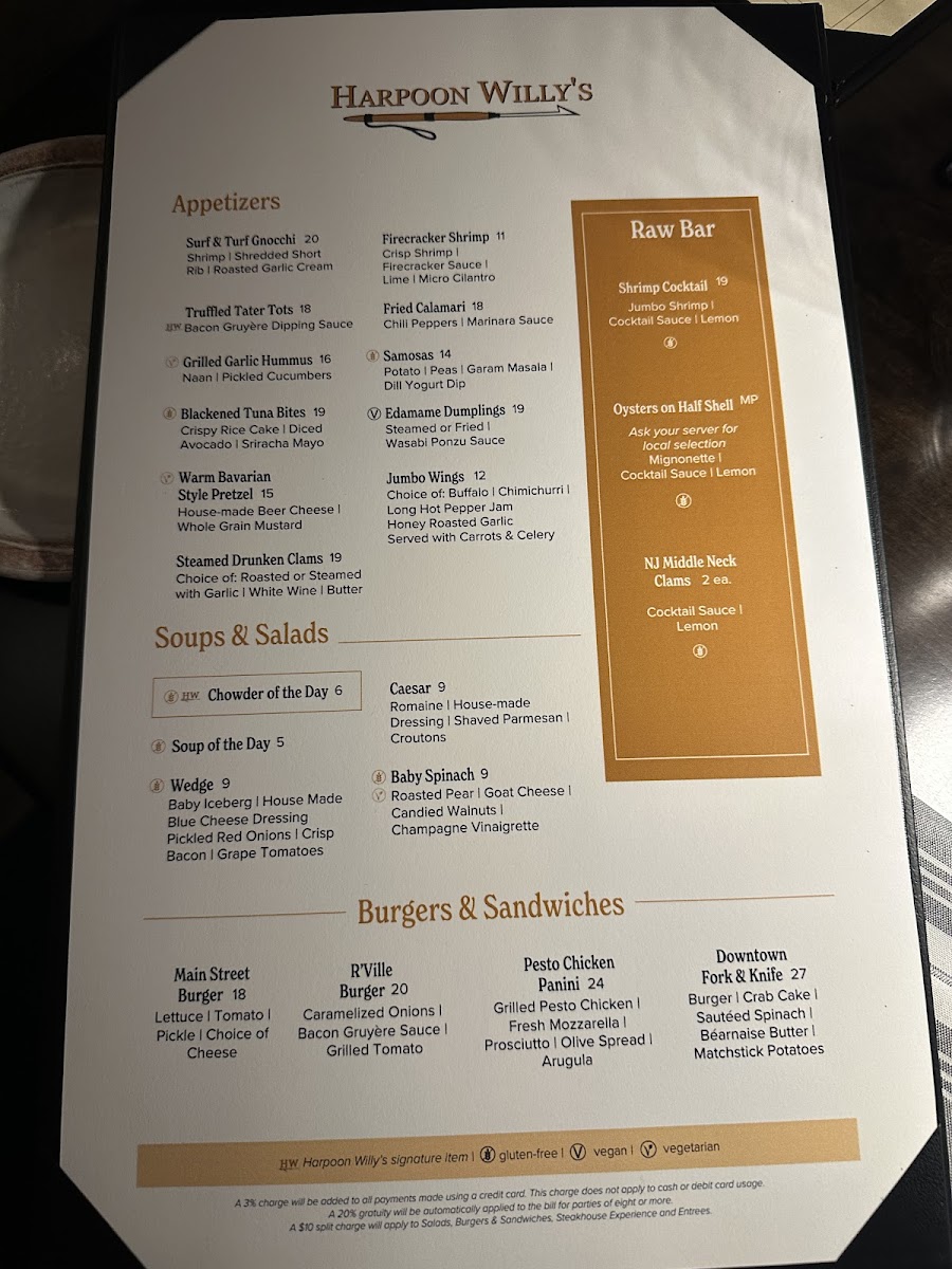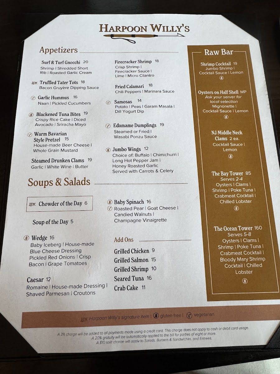 Located in Robbinsville, NJ, Harpoon Willy's is your new culinary haven. The menu features an array of mouthwatering selections that cater to every palate. For lunch, indulge in the hearty Main Street Burger with its fresh toppings or the succulent Jumbo Lump Crabcake Sandwich complemented by roasted garlic aioli. You can also savor unique sides like Truffle Fries and Broccolini.